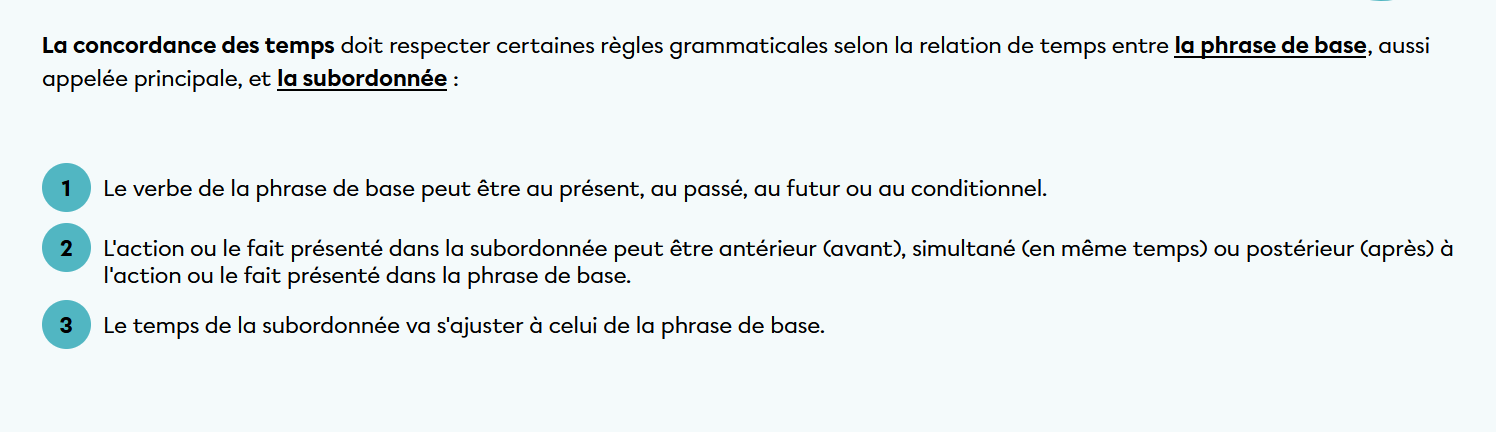 Pour en apprendre plus sur la concordance des temps, c'est par ici.