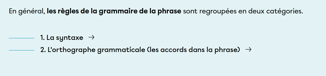 La grammaire de la phrase permet d'analyser les phrases et de vérifier si celles-ci sont écrites correctement. On dira d'une phrase bien formulée qu'elle est grammaticalement correcte ou syntaxique.