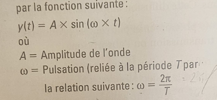 Finalement, pour le d), tu dois remplacer les variables A et ω par des valeurs numériques dans cette équation :