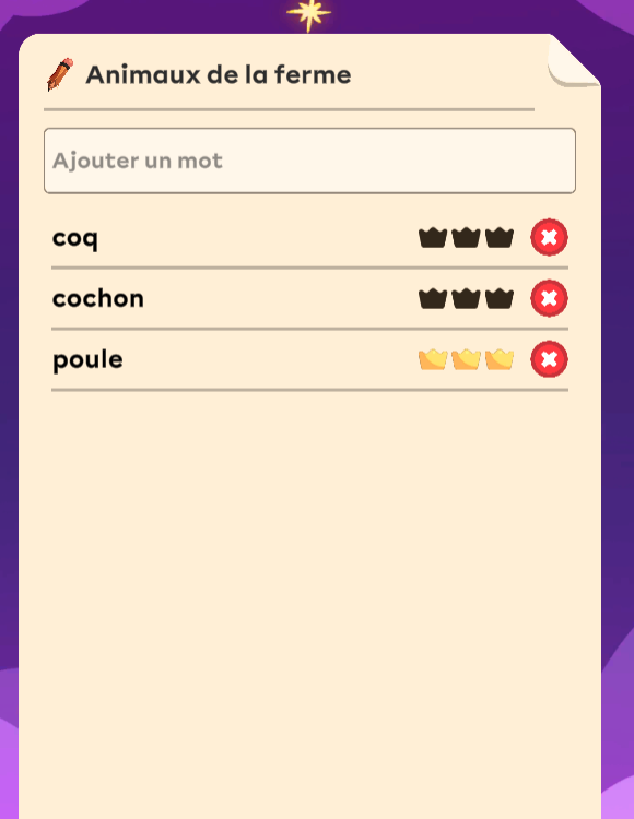 Les élèves n'auront qu'à entrer ce code pour pouvoir pratiquer leurs mots de vocabulaire ! :)