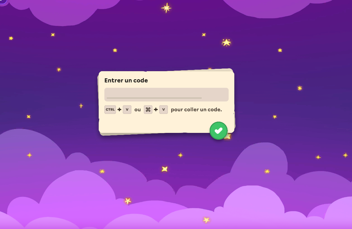 Bonjour, j'ai créer une liste de mots intitulée AUTOMNE. J'ai reçu le code (très long). En classe, avec les Ipads des élèves, il n'y a pas d'espace pour entrer le code. L'an passé, cela fonctionnait très bien. Maintenant, je ne trouve pas l'espace pour entrer le code. Pouvez-vous m'envoyer le lien ? Ou, pouvez-vous me dire si les élèves peuvent se connecter, sans compte, en entrant le code ? Dans l'affirmative, je dois vous demander ou se trouve l'espace code. Cordialement