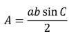 $$ A_\text{triangle} = \displaystyle \frac{\color{green}{a} \times \color{blue}{b} \times \sin \color{red}{C}}{2} $$