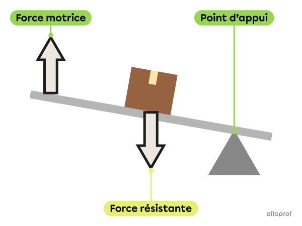 Dans un levier interrésistant, la force résistante (charge) est appliquée au centre, c’est-à-dire entre le point d’application de la force motrice et le point d’appui.