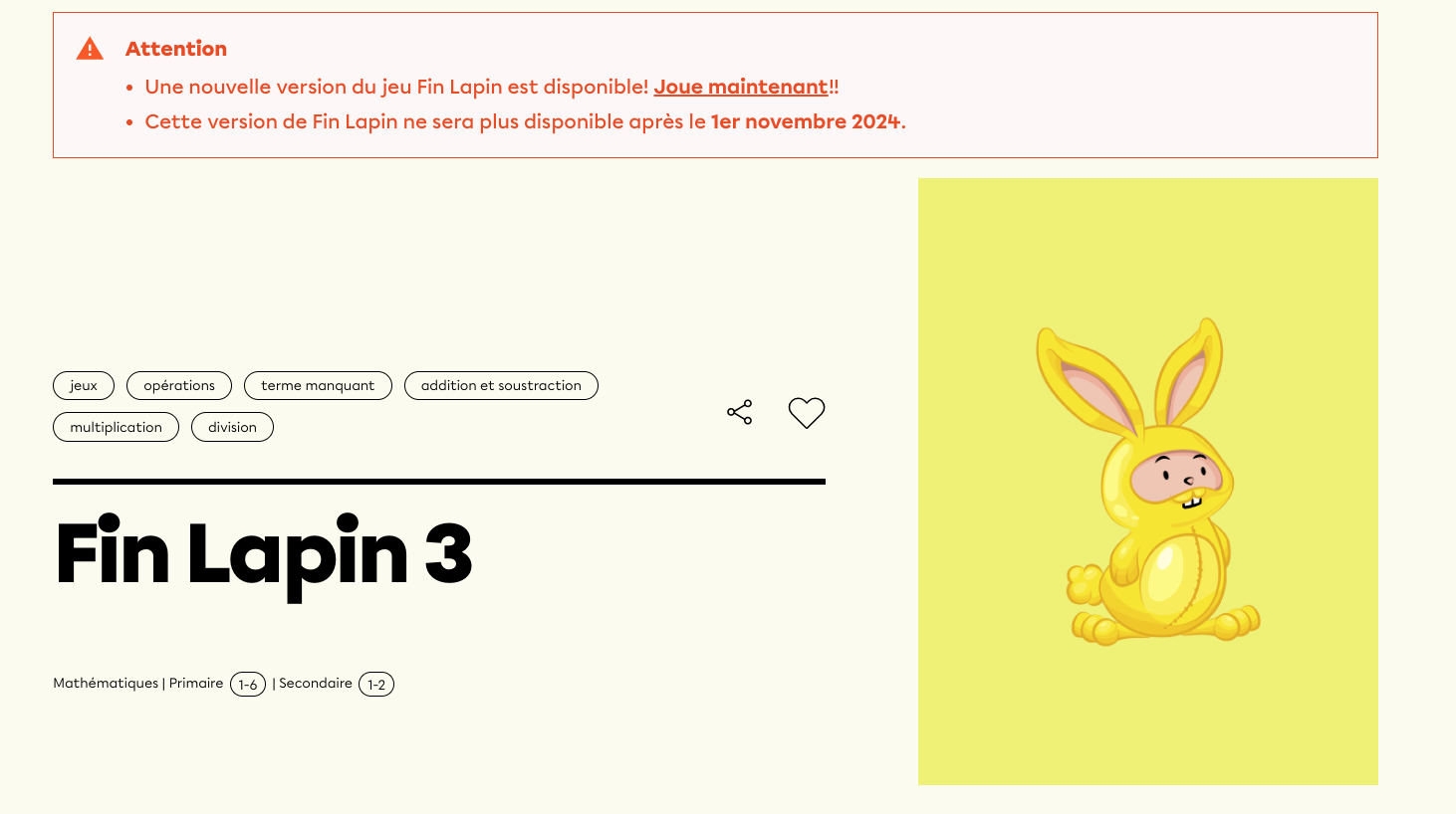 Allo! Je voulais jouer a Fin Lapin 3 et j'ai vu quelque chose qui disait que le jeux ne seras plus disponible à partir du premier Novembre mais nous sommes maintenant le 25. Est ce que c'est normal ou c'est moi qui bogue?