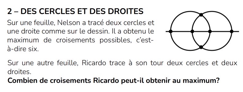 Je ne sais pas si ça compte mais si les deux cercles étaient superposés, tu aurais une infinité de croisements.