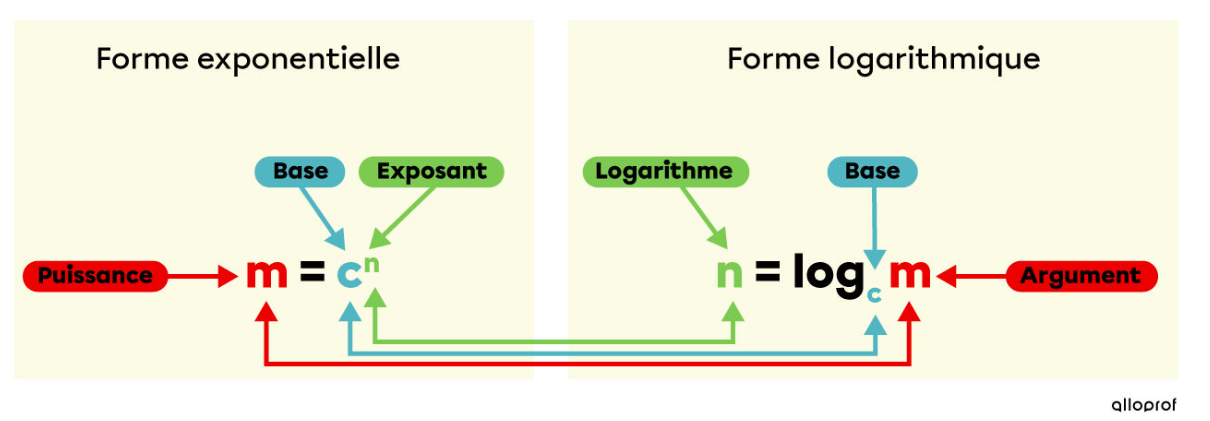 Un logarithme permet de trouver l'exposant que l'on doit affecter à une base pour obtenir le nombre en argument :