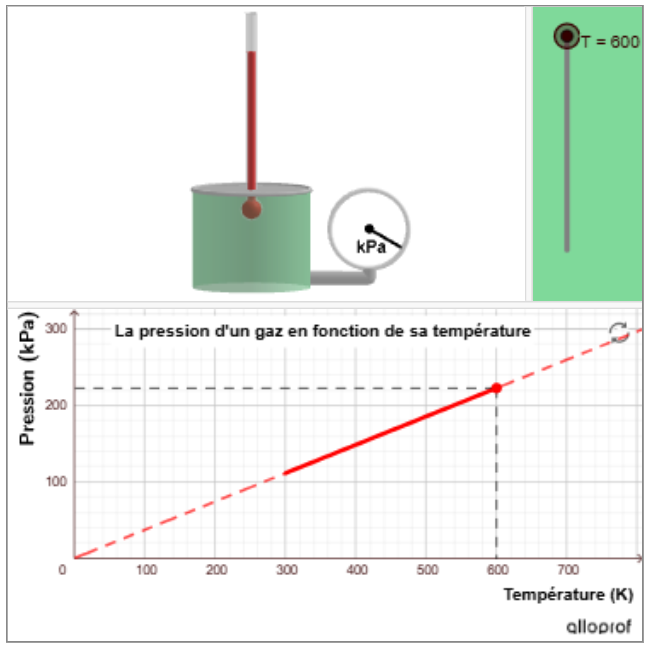 Voici une fiche sur cette notion qui pourrait t'être utile : La relation entre la pression et la température (loi de Gay-Lussac) | Secondaire | Alloprof