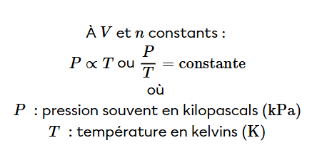 Si le volume est maintenu constant, augmenter la pression nécessite une augmentation de la température pour que ceci :
