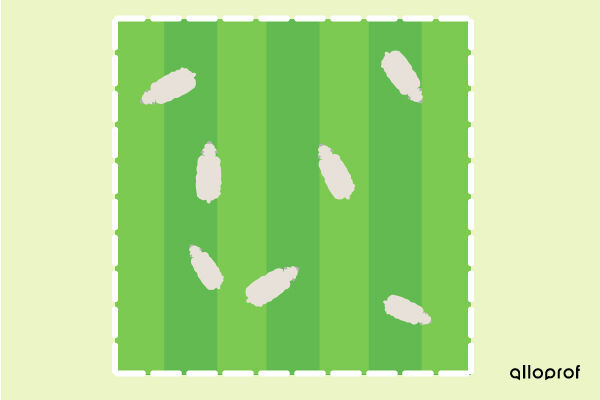 Par exemple, la superficie, ou encore l'aire d’un enclos pour animaux correspond à la surface de gazon qui se trouve à l’intérieur des clôtures.