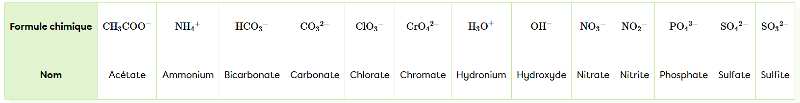 Un ion polyatomique est un ion formé d’un groupe d’atomes liés entre eux.