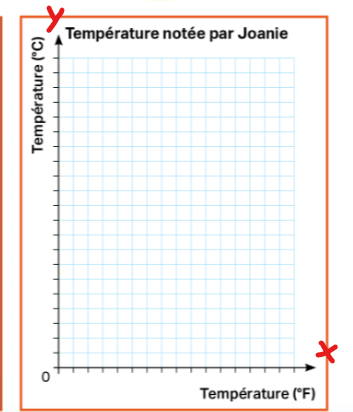 L'axe des x représente la température en ºF, et l'axe des y représente la température en ºC.