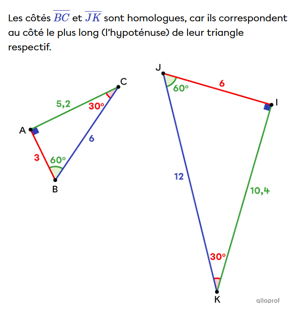 Moi aussi je viens d'apprendre les côtés et les angles homologues. Il s'agit en fait de côtés et d'angles qui sont parfaitement identiques. Nous pouvons parler de côtés et d'angles homologues que lorsque nous rencontrons deux figures isométriques. En effet, si deux figures ne sont pas isométriques, nous ne pouvons pas parler de n'importe quel côté ou angle homologue.