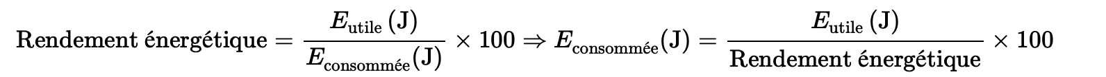 Ensuite, pour le b), nous avons déjà le rendement énergétique du ventilateur (85% =0,85), mais on cherche à trouver la quantité d'énergie électrique. Voici donc la formule que tu pourras utiliser dans ce cas-ci: