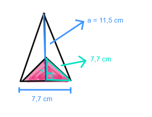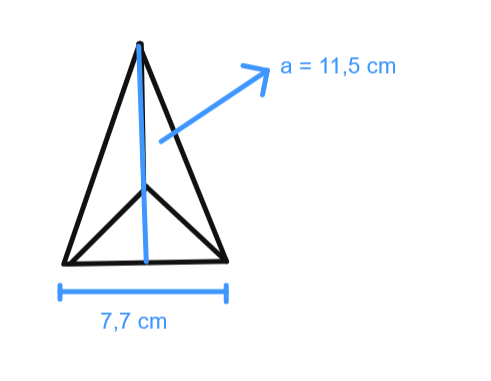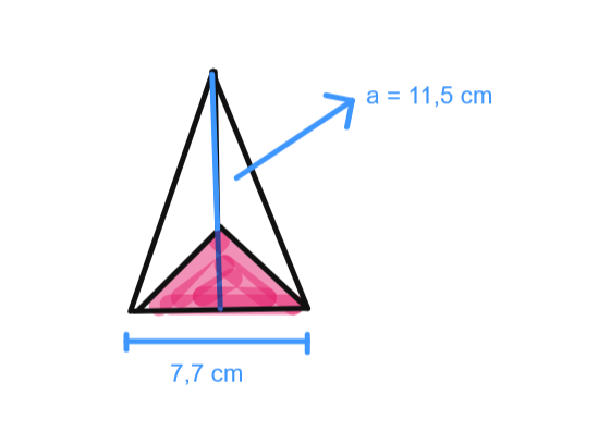 Alors, on a la mesure de l'apothème et d'un côté de la base triangulaire.
