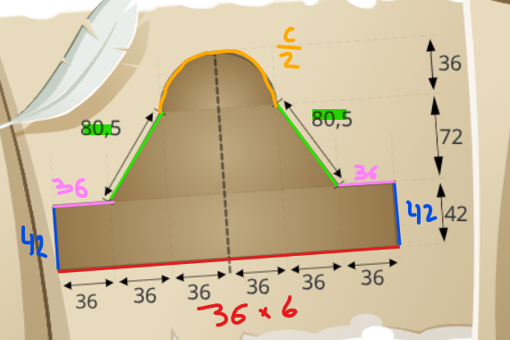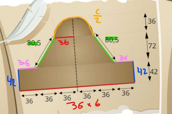 Pour trouver la mesure en orange, qui est la moitié de la circonférence d'un cercle (c/2), tu dois utiliser cette formule :
