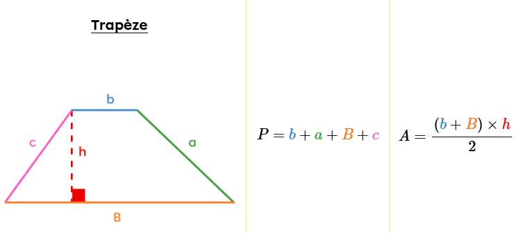 Aire totale = Aire rectangle rose + Aire trapèze rouge + Aire demi-cercle orange