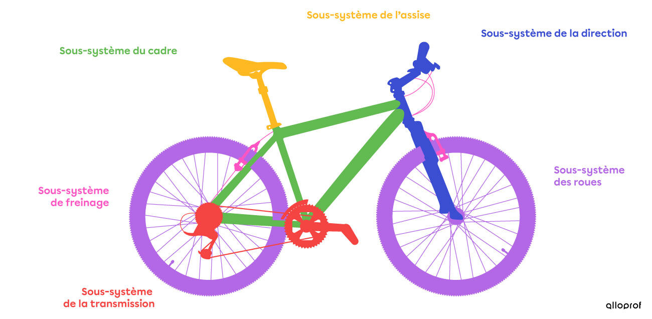 Dans ton cas, tu as deux composantes importantes pour le fonctionnement du vélo : la roue et les pédales, les deux reliées par une chaîne. Tu peux aussi penser au guidon par la suite, mais je te conseille de commencer par ces deux-là.