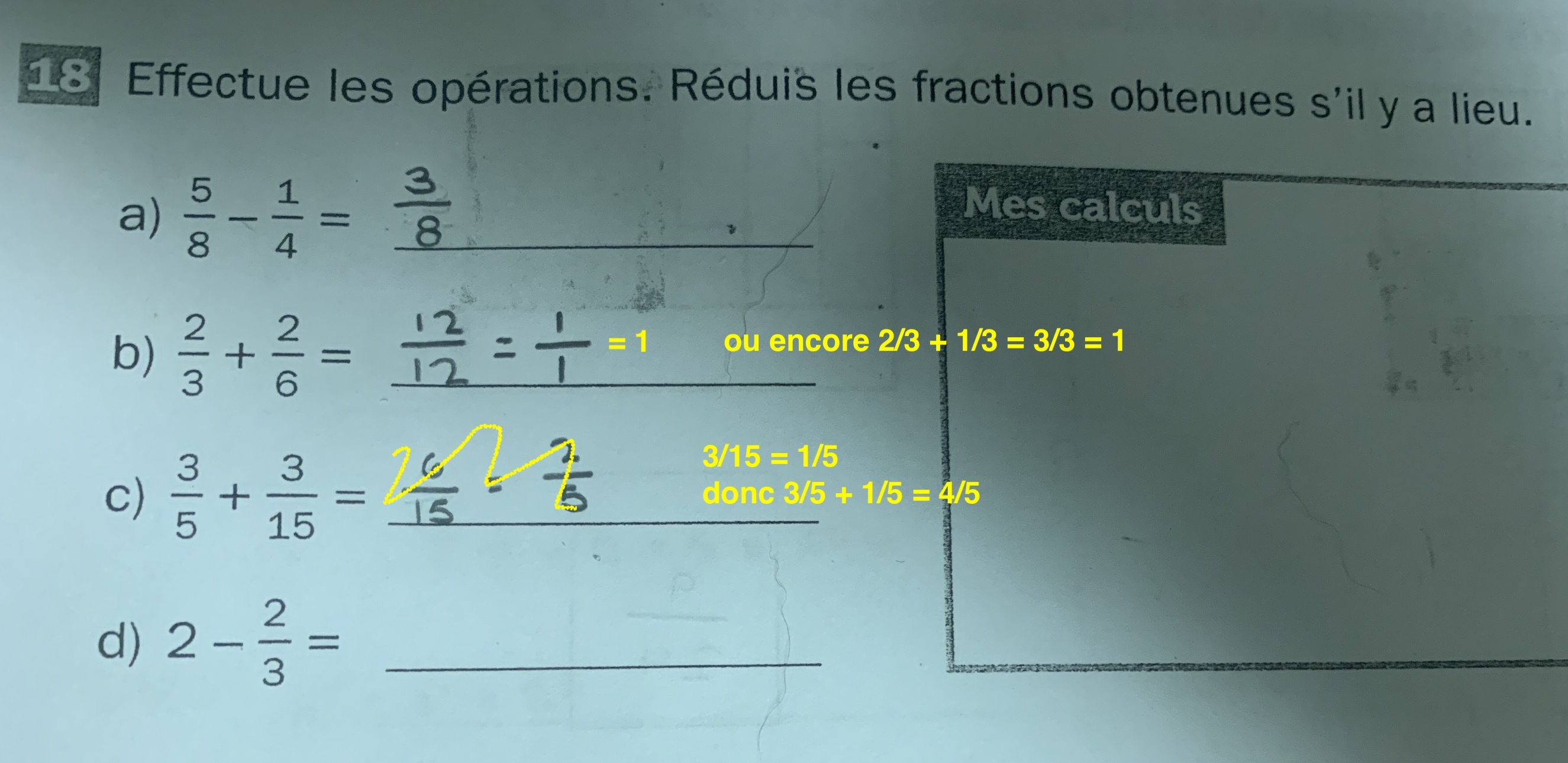 Pour le b), on peut diviser 6 et 2 par 2 ce qui va nous donner 1/3! La somme est possible par la suite!