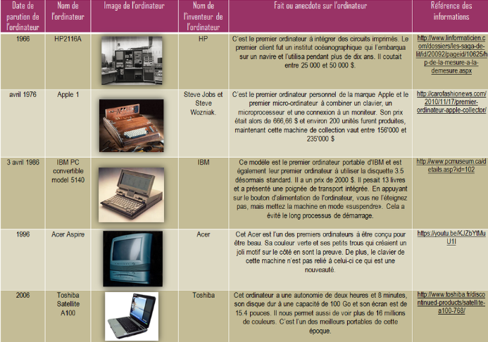 Voici quelques évolutions importantes de l'ordi.