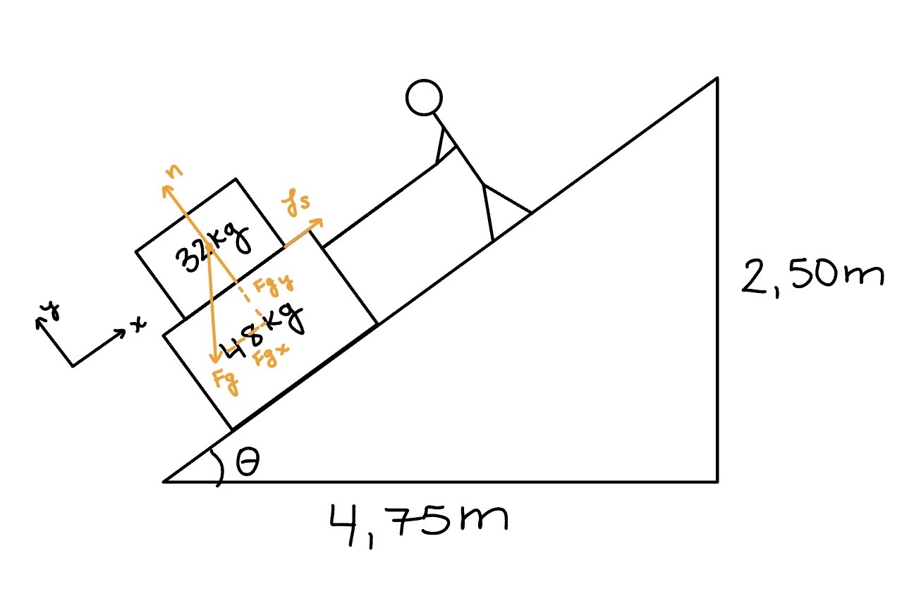 a) Le frottement entre le sol et la grosse boite est cinétique. Ceci veut dire que la boite est en mouvement par rapport à la pente.