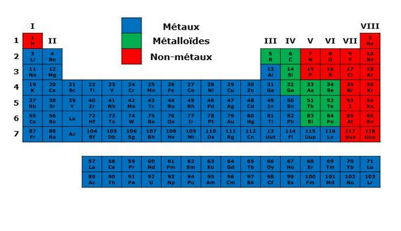 Le tableau périodique comprend trois grands groupes : les métaux, les non-métaux et les métalloïdes.