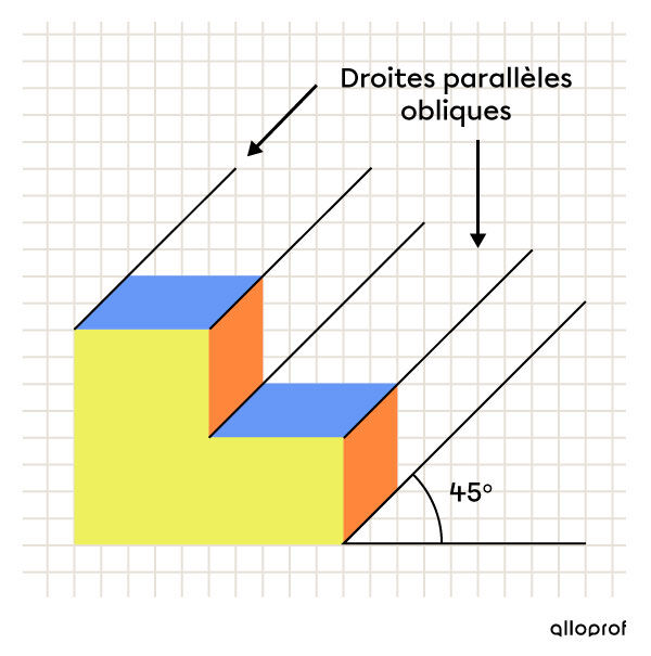La projection oblique, quant à elle, est la représentation en perspective d’un objet placé afin qu’une de ses faces soit parallèle à la feuille de dessin et que la profondeur soit obtenue en traçant des droites obliques et parallèles entre elles.