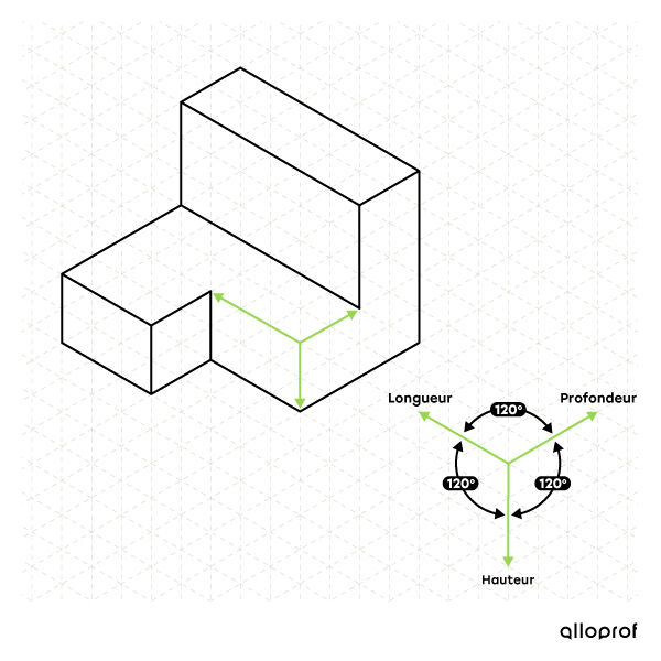 La projection isométrique est une représentation en perspective d’un objet, où les trois arêtes principales (qui correspondent aux trois dimensions de l’objet) forment des angles égaux de 120°.