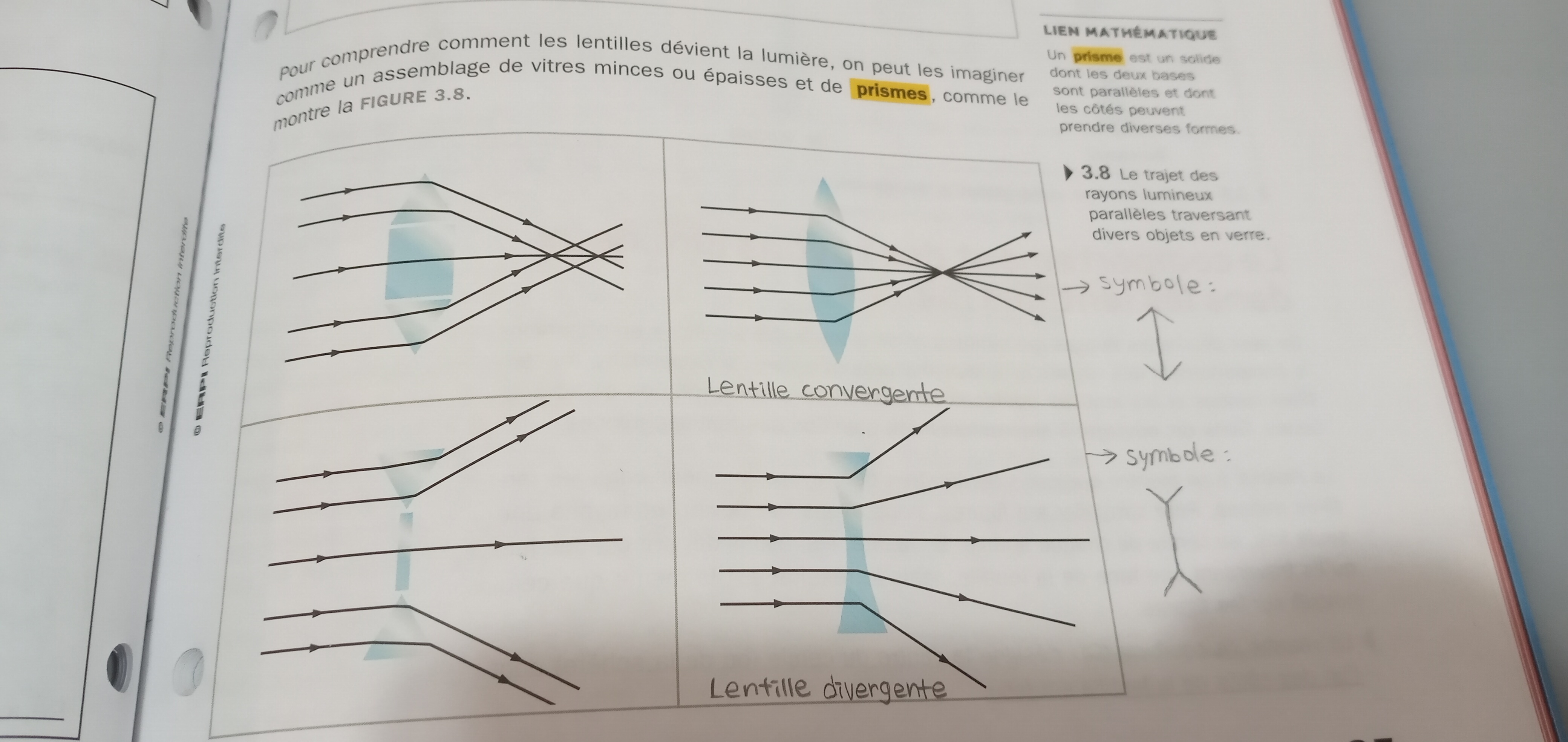 Ainsi, dans ton cahier, on considère que les lentilles sont composées à la fois de vitres et de prismes, ce qui donne leurs différentes formes.