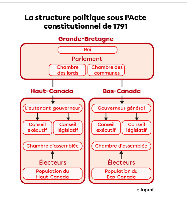 Voici à quoi ressemblait la structure politique sous l'Acte constitutionnel (parlementarisme) :