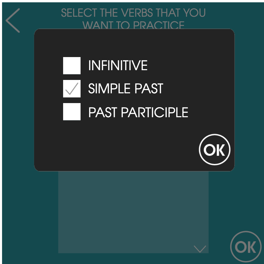 Tu pourras y sélectionner les verbes que tu souhaites pratiquer. La dernière étape sera tout simplement de sélectionner «Simple past».