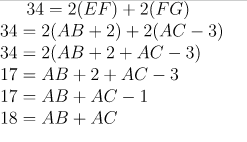 Dans le rectangle DEFG, tu utiliseras les contraintes sur les côtés EF et FG pour trouver le périmètre de 34 cm: