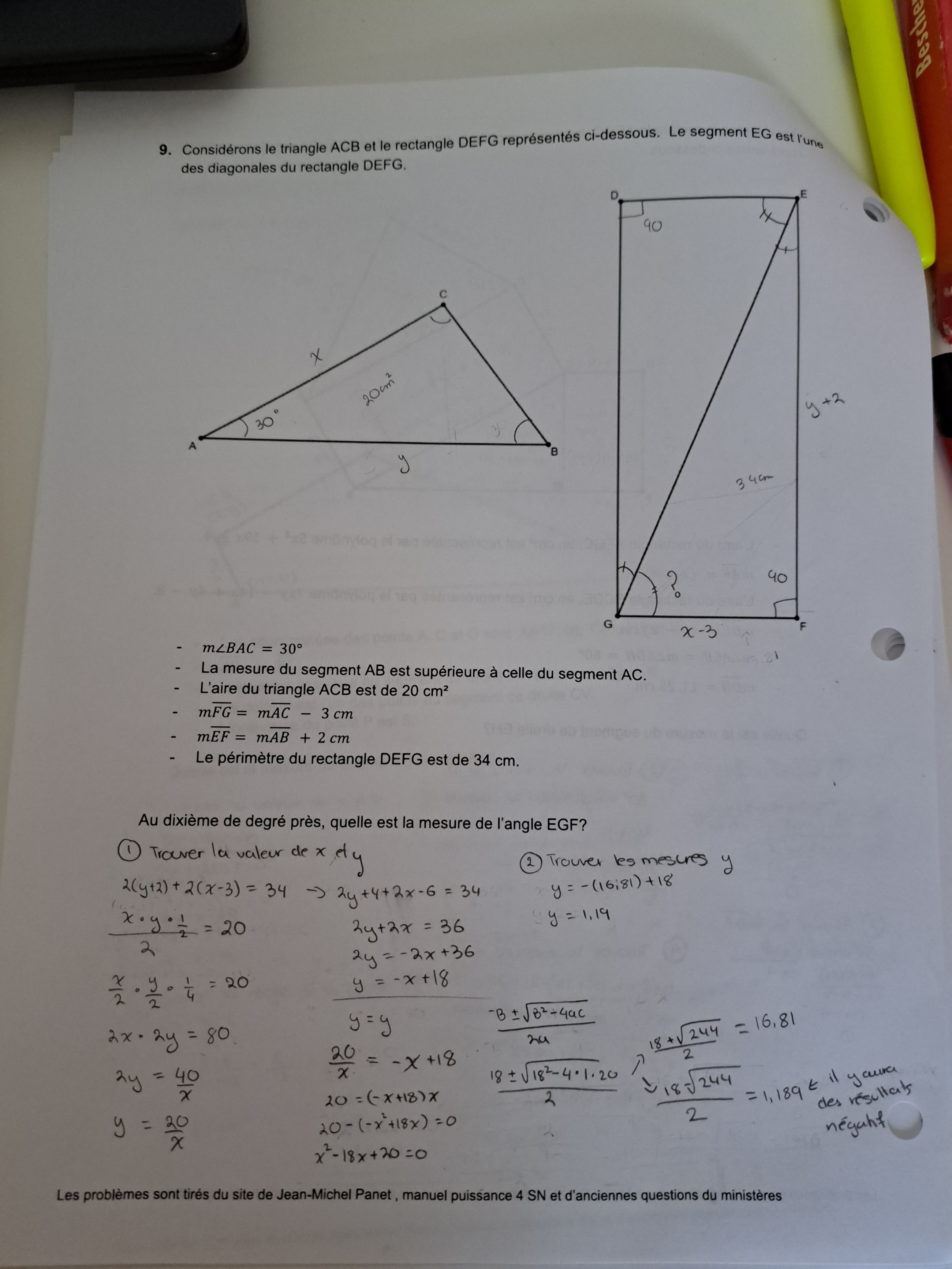 Donc, tu devras résoudre un système d'équations tel que: AB*AC =80 et AB+AC = 18.
