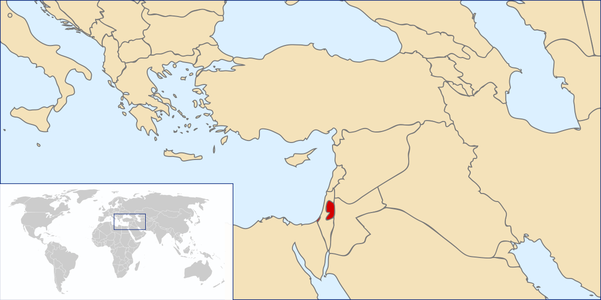 Pour plus de précision, voici une carte te montrant l'emplacement réel de la Palestine :