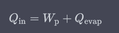 En circonstances idéales, la puissance thermique fournie au milieu chauffé est égale à la somme de la puissance mécanique requise pour faire fonctionner la pompe et de la chaleur absorbée par le réfrigérant.