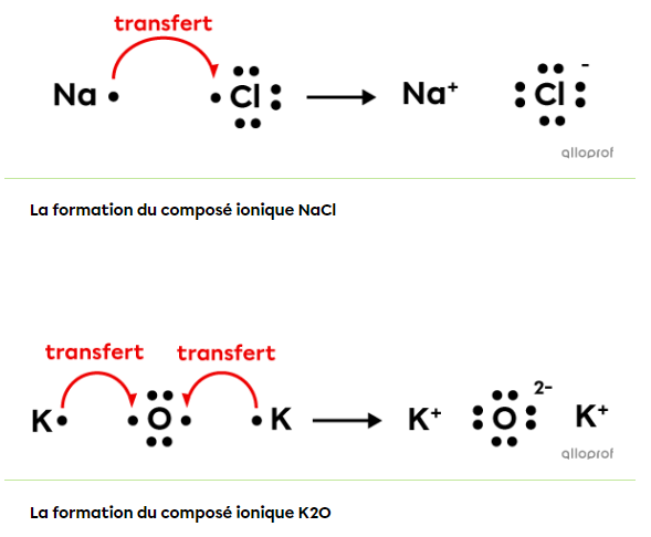Voici quelques exemples de liaisons covalentes et ioniques avec la notation de Lewis :