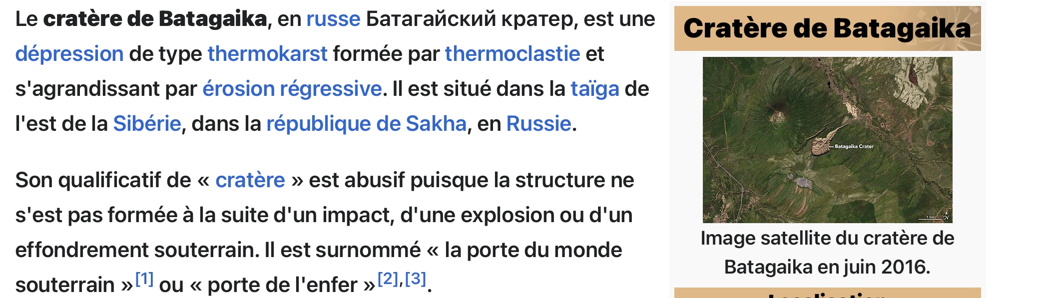 https://www.geo.fr/environnement/siberie-cratere-batagay-vaste-depression-permafrost-surnommee-porte-vers-outre-monde-thermokarst-pergelisol-215923#:~:text=Le%20vaste%20crat%C3%A8re%20de%20Batagay,en%20d%C3%A9tail%20par%20des%20scientifiques.