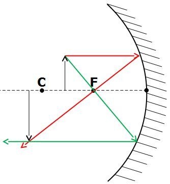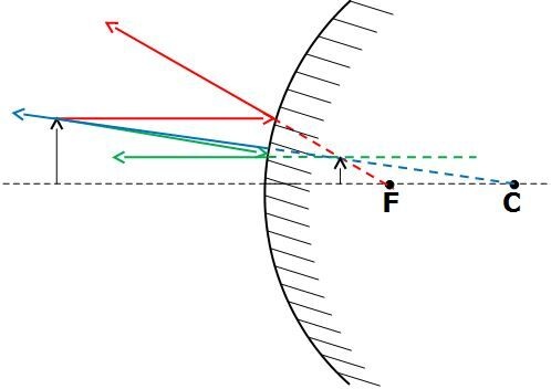 Ensuite, les images formées par un miroir concave ne sont plus grandes que l'objet que si l'objet est situé entre le centre du miroir et le miroir lui-même.