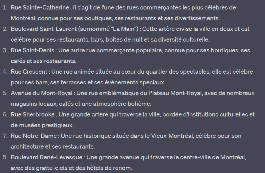 Une rue peut être populaire ou très fréquentée pour ses commerces et restaurants, ses attractions touristiques ou pour plusieurs raisons à la fois. Une recherche internet dans ce sens t'aidera.