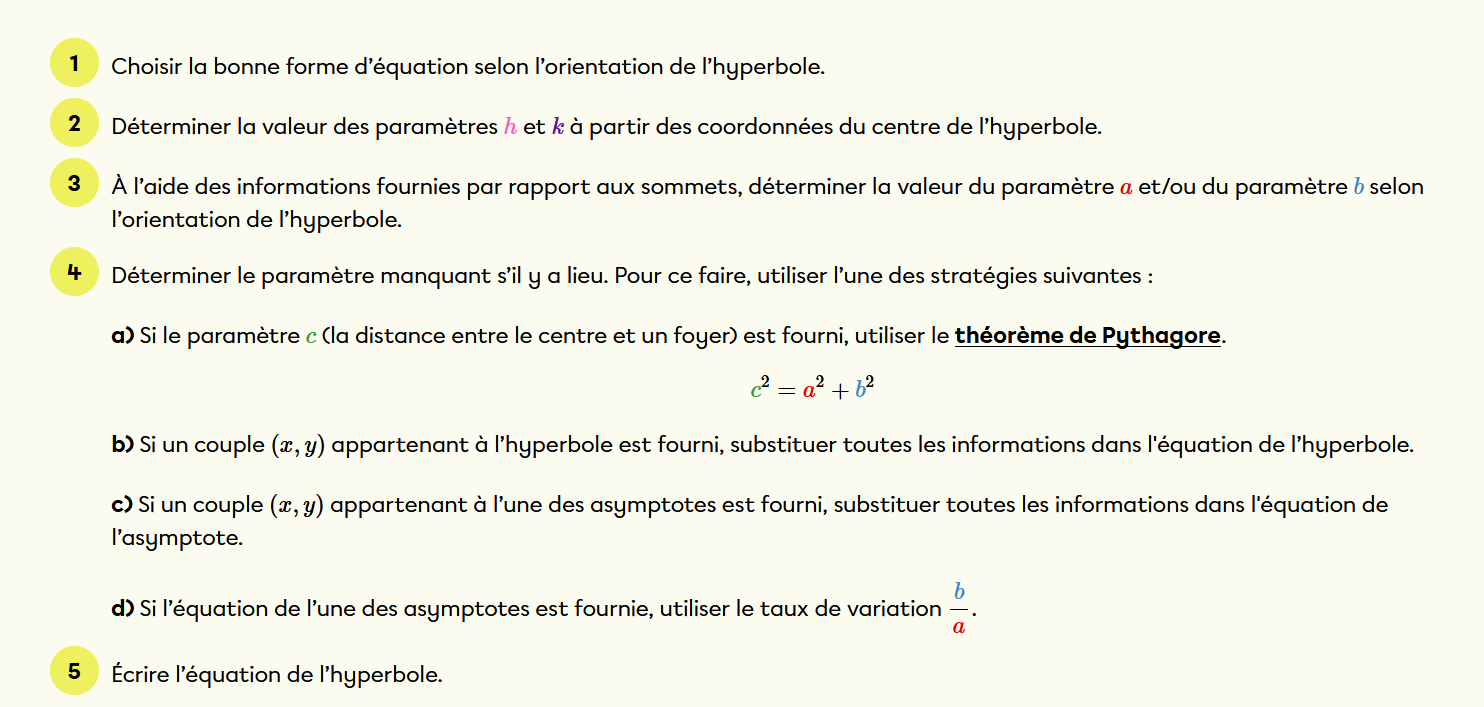 Ensuite, la démarche à suivre pour trouver l'équation est la suivante.