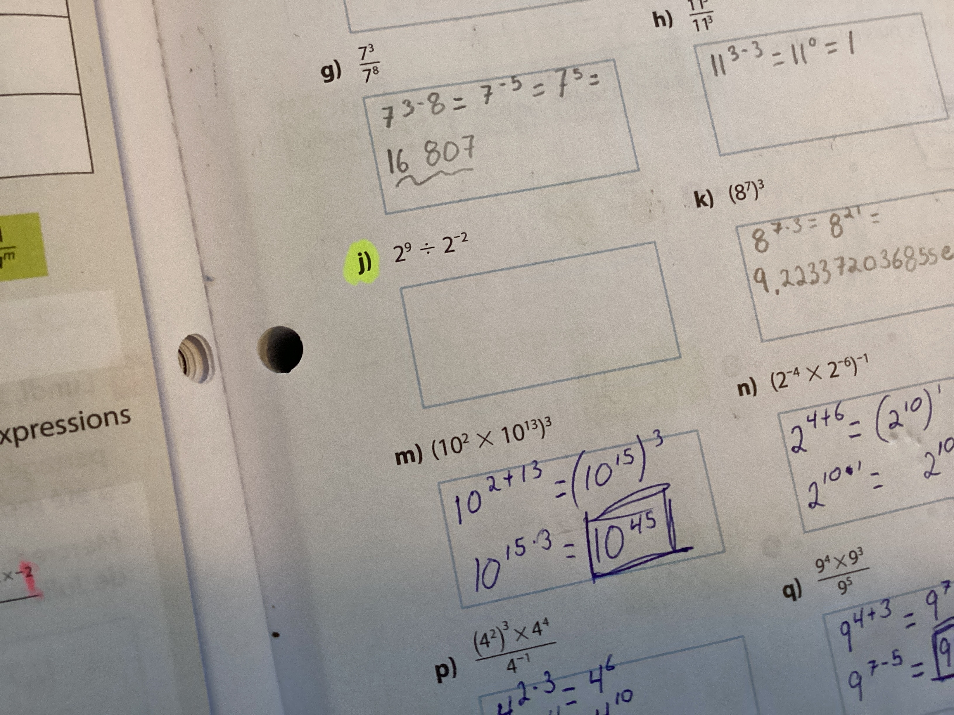 Pour résoudre, en ce qui a trait aux exposants, tu peux faire 9--2, ce qui donne exposant 11.