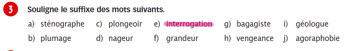 Bonjour, j'aimerais savoir quel est le suffixe du mot interrogation svp .