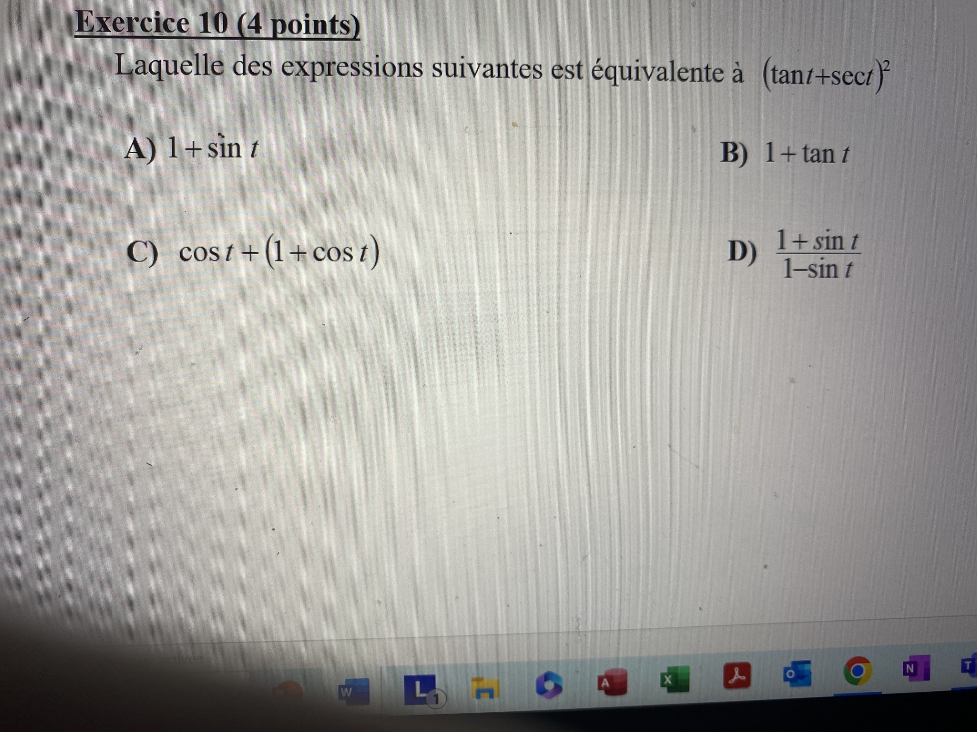 (tan 1 + sec t)²= (sin t/cos t + 1/cos t)² = (sin t + 1)²/ (cos t)²