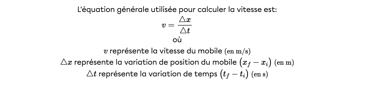 Afin de calculer la vitesse à l’aide d’un graphique, tu peux utiliser la formule ci-dessous.