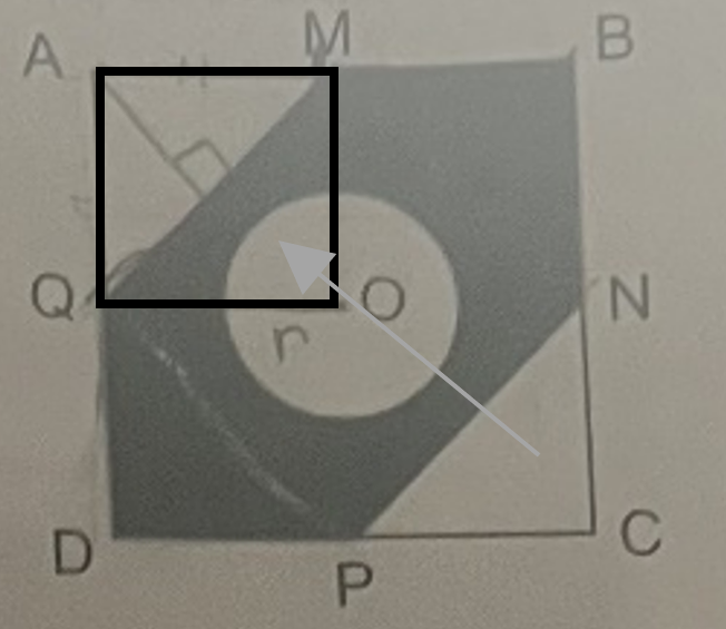 Au lieu de perdre son temps à mesurer la base et la hauteur d'un triangle individuel en utilisant la trigonométrie ou le théorème de Pythagore, on peut voir les quatre triangles comme un carré qui les regroupe puisque M, N, P et Q sont des points milieux.
