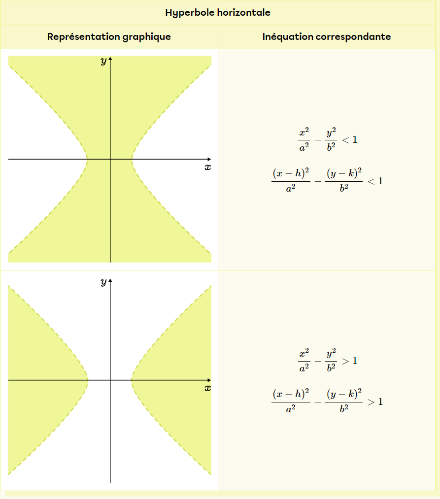 Finalement, tu peux trouver l'inéquation qui représente les zones coloriées.