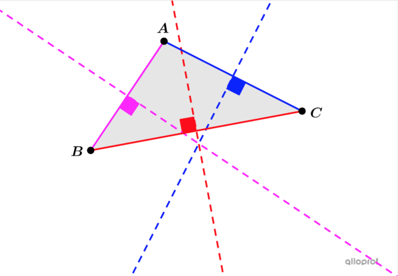 Une médiatrice est une droite perpendiculaire à un segment qui passe par le milieu de ce même segment.