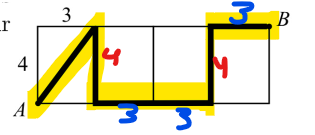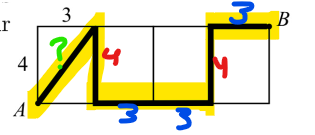 Pour trouver cette longueur, on doit donc additionner chaque petit segment composant le chemin! On connait déjà certaines mesures, soient celles-ci :