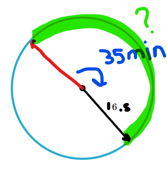 Pour le premier problème, tu dois trouver l'arc de cercle formé par l'aiguille d'il y a 35 minutes et l'aiguille de l'heure actuelle.