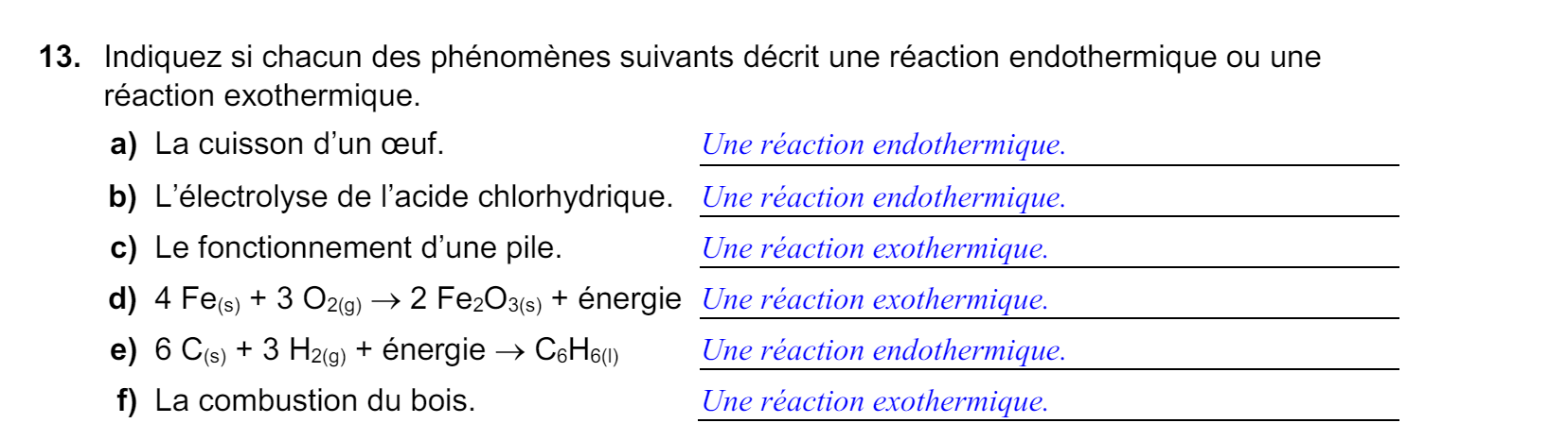 Cette fiche du site d'Alloprof explique les réactions endothermiques :