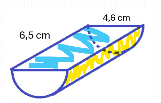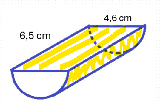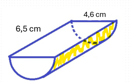 Puis, tu dois diviser par deux le résultat trouvé, puisqu'on a un demi-cylindre. On obtiendra alors l'aire de cette surface :